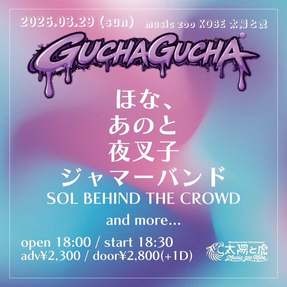 GUCHAGUCHA 出演決定 SCHEDULE 2026/03/29(日) 18:00 - 2026/03/30(月) 00:00 2026.03.29(sun)GUCHAGUCHA 場所📍太陽と虎 ほな、あのと夜叉子ジャマーバンドSOL BEHIND THE CROWD open 18:00 / start 18:30adv¥2,300 / door¥2,800 URLをコピーする 報告する